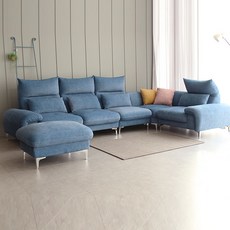 자네트 에이지 5인 6인용 코너형 하이브리드 아쿠아텍스 모듈형 패브릭 소파, 6인용 스툴포함, 미스티블루