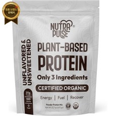 NUTRAPULSE 유기농 비건 단백질 파우더 - 식물성 단백질 글루텐 프리 1회 제공량당 20g 스무디 앤 쉐이크에 좋습니다(1pk 20인분 무향)