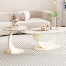 아우스 XM09 비즈크림 소파테이블 라운드 세라믹 타원형 거실테이블 디자인 인테리어테이블 골드 거실탁자