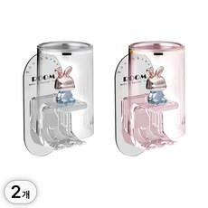 투데이리빙 1+1 토끼 양치컵 칫솔 거치대 무타공 욕실 칫솔통 걸이통 양치 홀더 걸이 화장실 수납 정리 꽂이 용품, R98036B, 2개, 투명+핑크