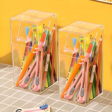 마켓플랜 다용도 필기구 케이스 보관함 사각, 투명, 2개