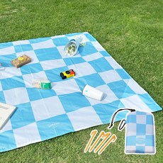 솜솜라이크 여행용 경량 돗자리 피크닉매트, 체커보드 스카이블루