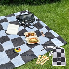 솜솜라이크 여행용 경량 돗자리 피크닉매트, 체커보드 블랙