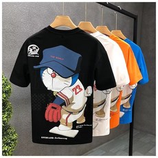 남성 여름 티셔츠 일본 만화 도라에몽 야구 선수 코튼 반팔티