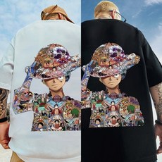 (당일발송) 애니 원피스 모자이크 루피 반팔 티셔츠 95-110 기본핏 만화 캐릭터 코스프레 프린팅 커플 옷