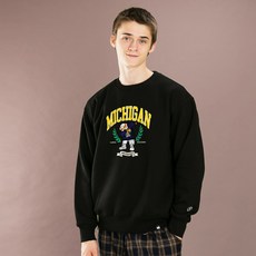 남녀공용 미시간 타이거 캐릭터 기모 라운드 블랙 맨투맨CHM-104