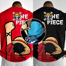 (당일발송) 애니 원피스 빅보스 반팔 티셔츠 오버핏 105-110 쵸파 루피 조로 만화 캐릭터 빅사이즈 커플 옷