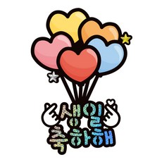 시우리빙 일러스트 큐빅 생일토퍼, 선택1 하트풍선
