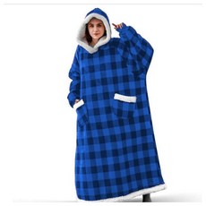 후드롱입는담요 홈웨어 캠핑 차박 여행 다용도 후드원피스담요, 블루블랙체크