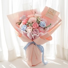 라솔트 파스텔 비누꽃다발+쇼핑백+LED전구, 핑크소다, 1세트
