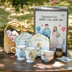 하트웨이 결혼선물 커플세트 2인 그긋 식기 앞접시 주방 물컵, colour, 그긋,컵,접시,젓가락, 1세트