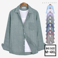 가이스토리 남성용 사계절 피셔 포켓 긴팔 빅사이즈 캐주얼 셔츠