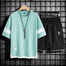 NEW 남자 배색 레이어드 츄리닝세트/반팔 반바지 세트/여름 트레이닝 세트/남자 여름 반바지 세트/상하의 세트 빅사이즈 6817