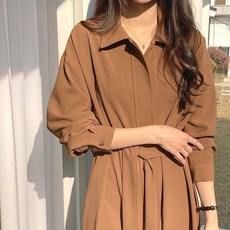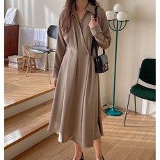투디 오픈카라 벨티드 셔츠 플레어 롱원피스 하객룩 3컬러