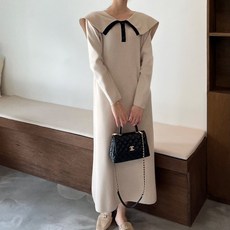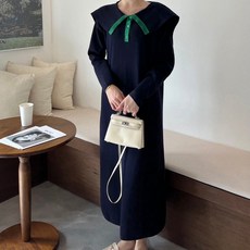 여성 루즈핏 빅카라 포어드 니트 롱 원피스 임산부 돌잔치 하객룩