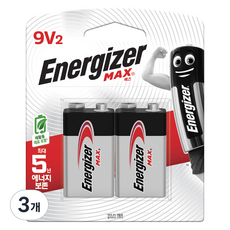 에너자이저 맥스 알카라인 9V 특수건전지, 2개입, 3개