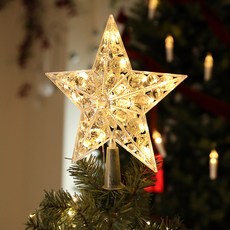 JIBAIHUO 크리스마스오너먼트 투명 오너먼트세트 별 레드 골드 배터리 전원 스타 조명 크리스마스 트리 탑 장식 장식품 화환 새해 홈, 01 S 16X17cm, [01] warm
