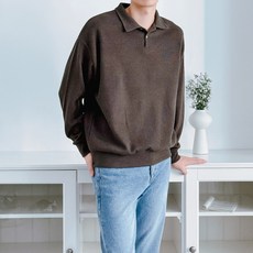 룩샵 남자 남성 데일리 오버핏 무지 카라 특양면 반집업 맨투맨