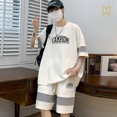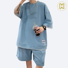 남성 와플 오버핏 5부 반팔 반바지 여름 트레이닝 세트 WI084SET