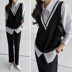 쏭걸 빅사이즈 XXL 하객룩 니트 레이어드 셔츠 88 99 100 오피스룩 3451